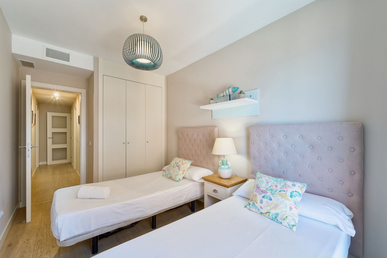 Cuenta con 3 amplias habitaciones, 2 baños completos, y salón con acceso a un balcón privado desde el que podrás disfrutar de vistas laterales al mar.