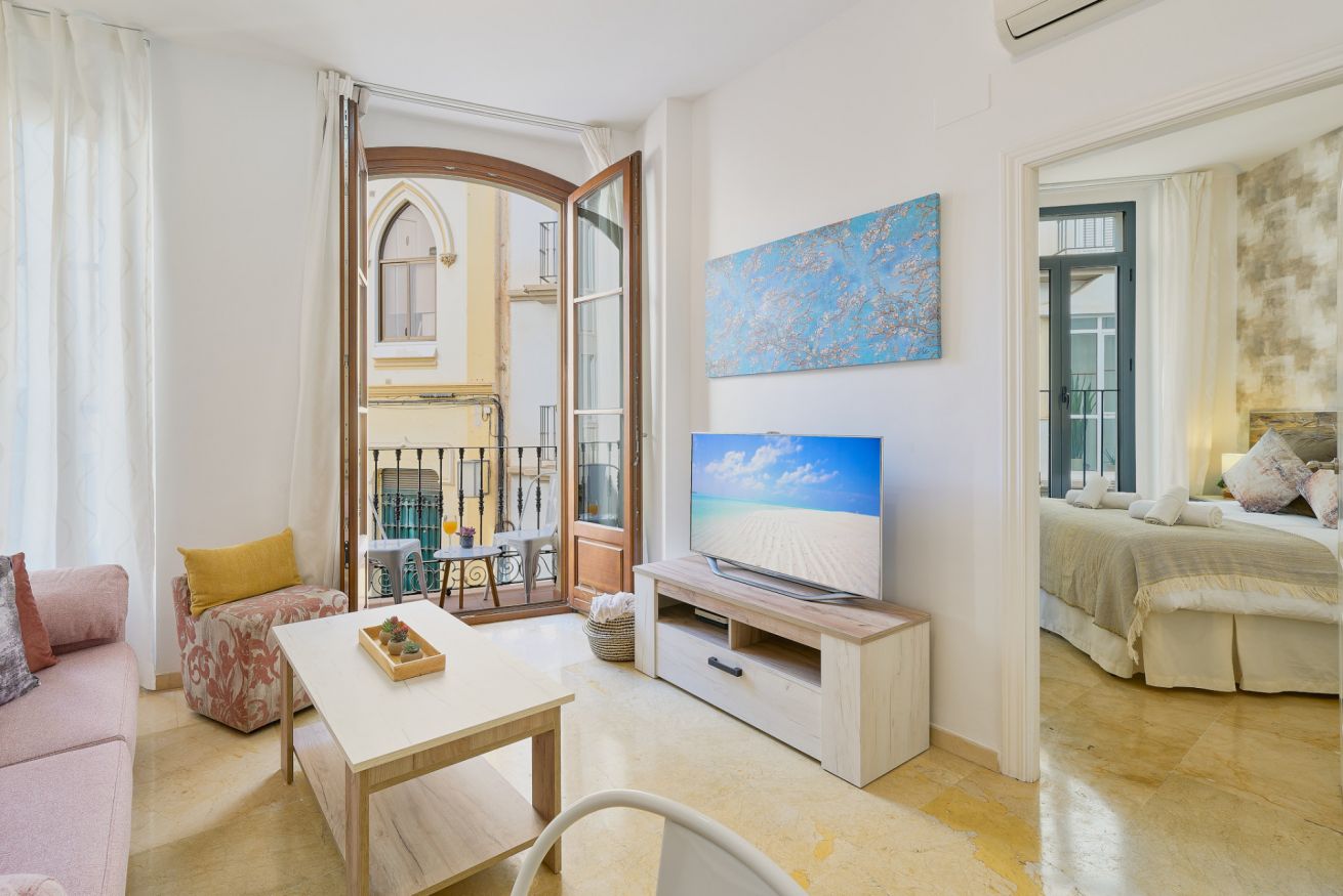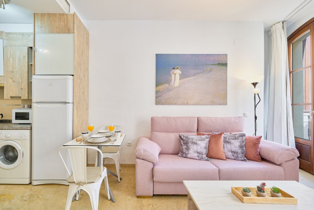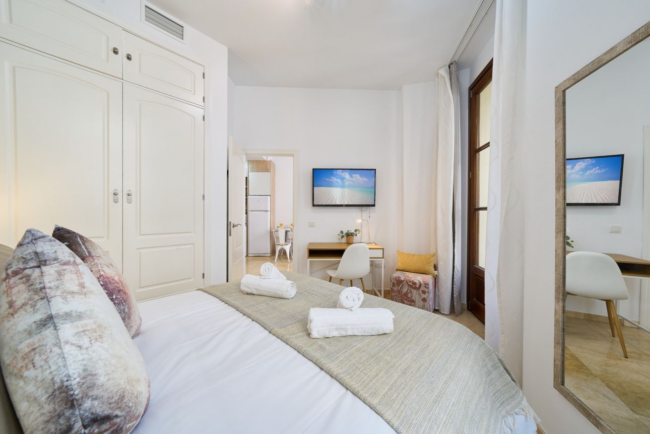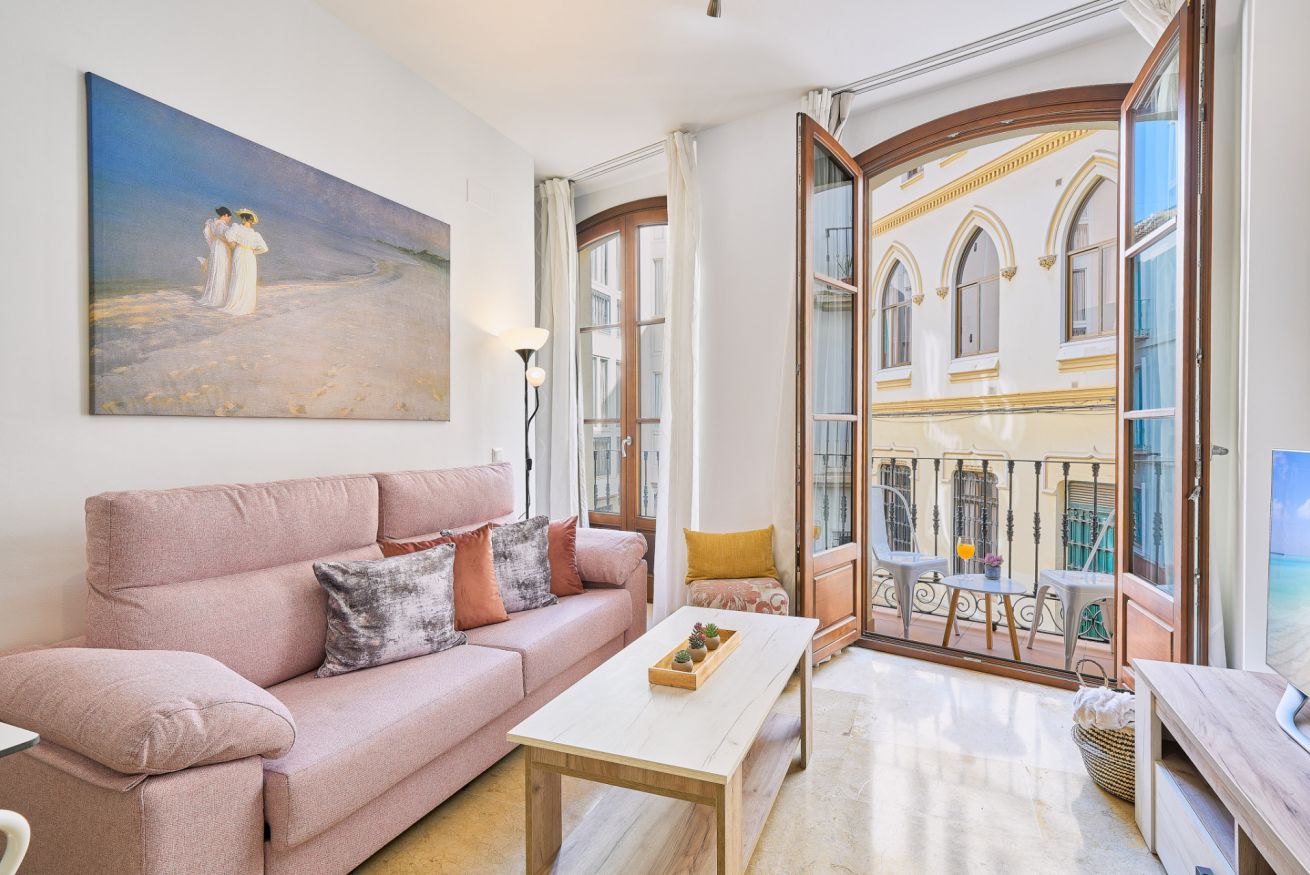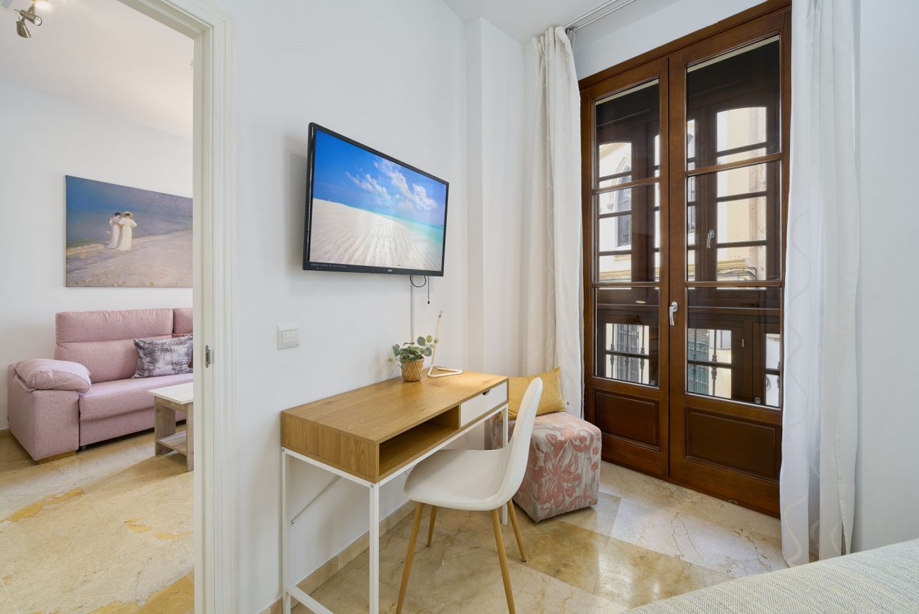 Precioso apartamento en el centro histórico de Málaga en un edificio del siglo XVIII, rehabilitado manteniendo la fachada original. Se encuentra en una calle peatonal, tranquila y sin tráfico de coches, a 2 minutos andando del Museo Carmen Thyssen, a 5 minutos de la Catedral de Málaga, a 5 minutos de la Calle Larios y a 10 minutos andando del teatro romano. Con un dormitorio doble, sofá cama doble en el salón, cocina equipada, Wifi y smart TV.
