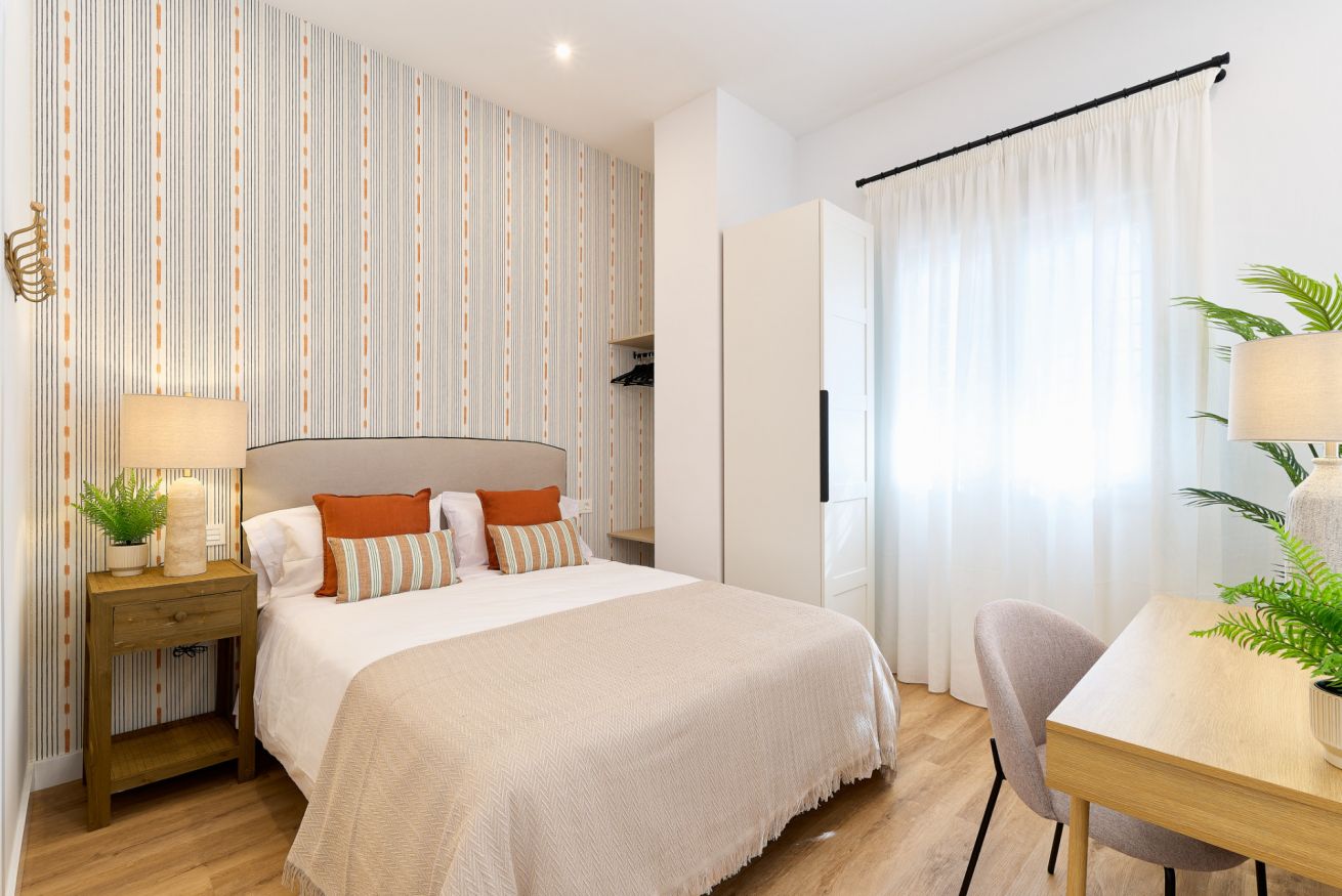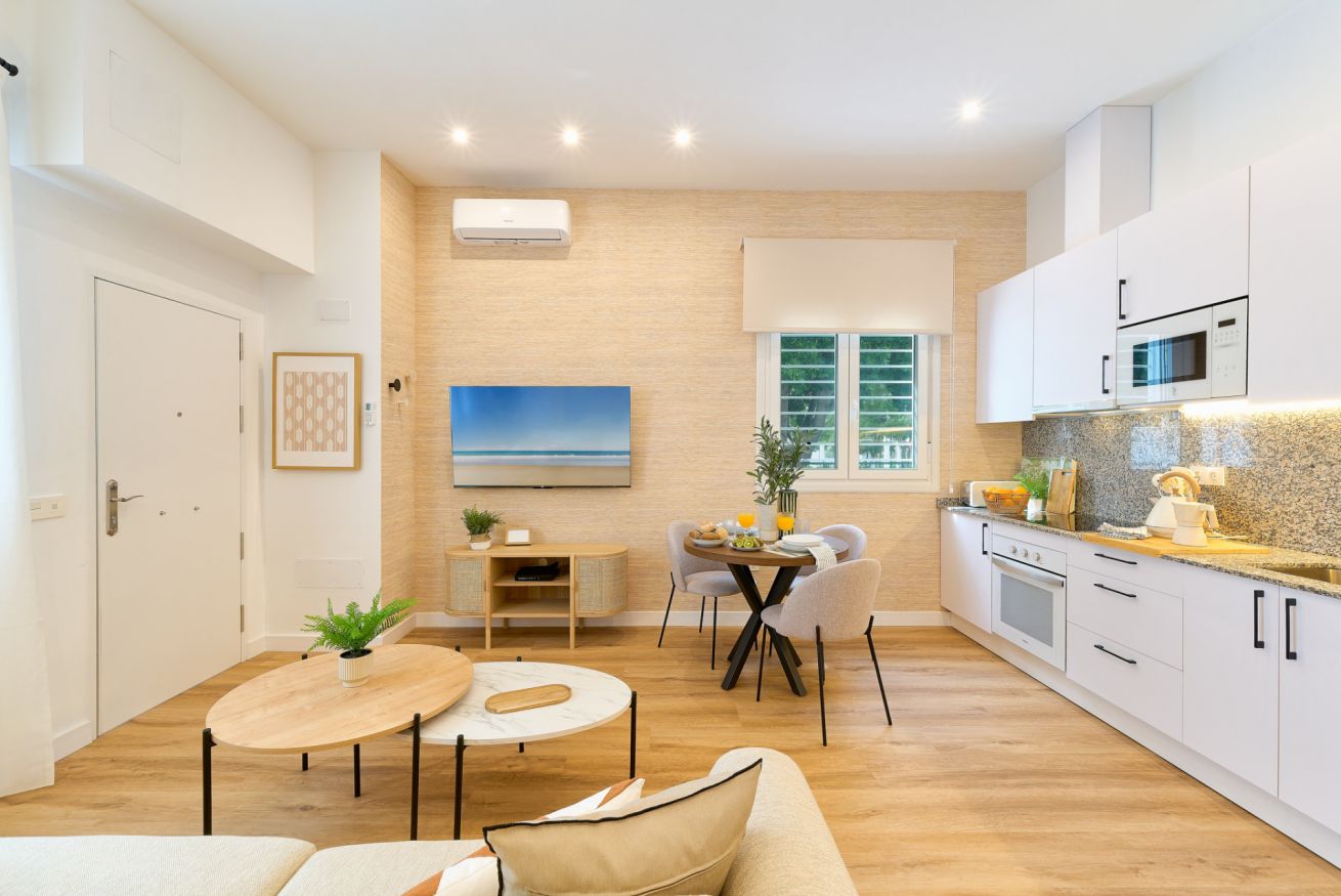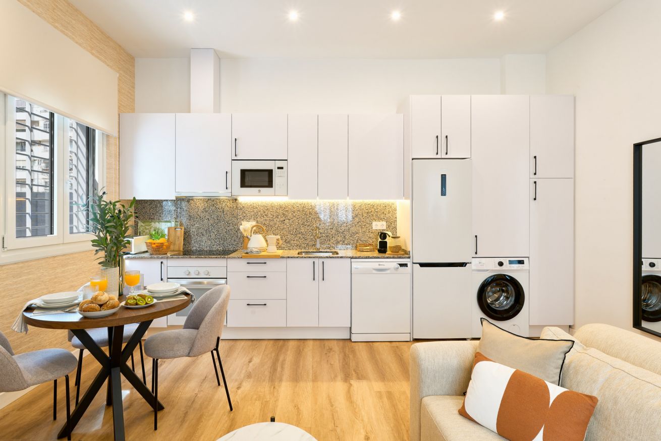 La cocina, completamente equipada con horno y lavavajillas, es perfecta para que des rienda suelta a tus habilidades culinarias o simplemente disfrutes de una comida rápida antes de explorar todo lo que Málaga tiene para ofrecer.