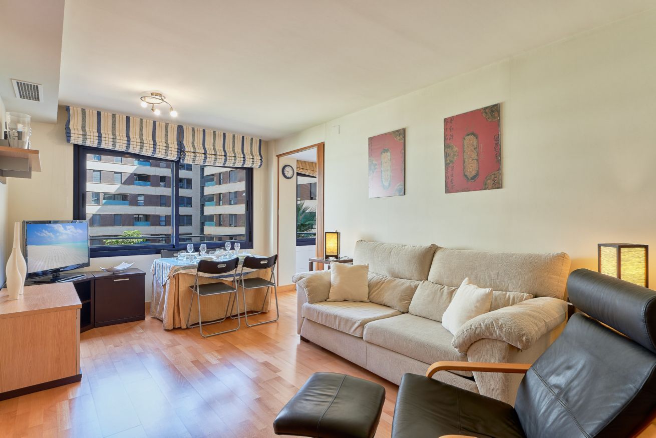 Amplio salón con TV Smart TV, wifi, calefacciones/ aire acondicionado centralizado y sofá cama. Amplio dormitorio con armario empotrado y cama doble. Cocina coqueta y funcional y baño completo.