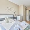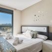 El lujo de alojarse en un precioso y amplio apartamento de tres dormitorios y dos baños con una espectacular terraza con vistas al mar .