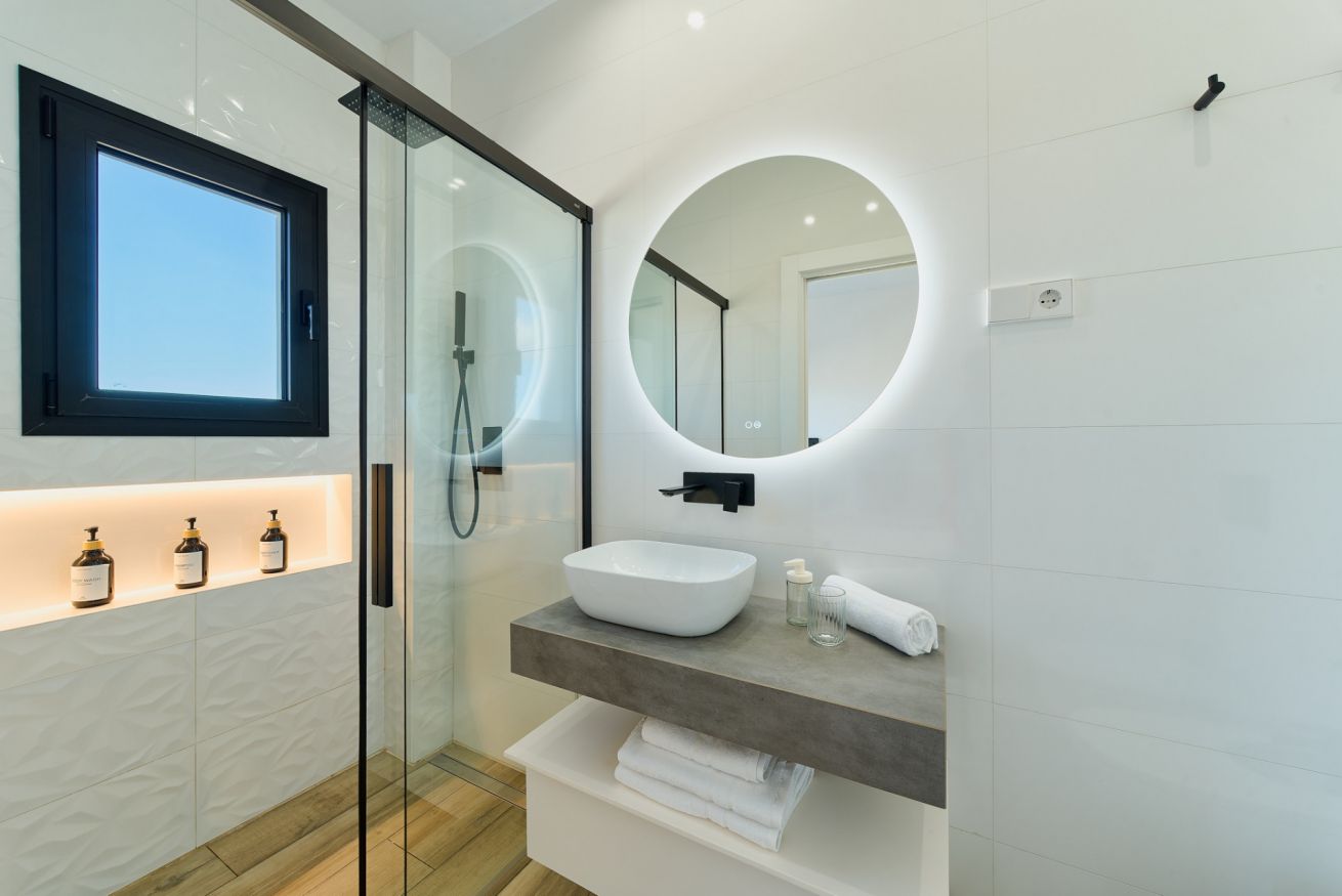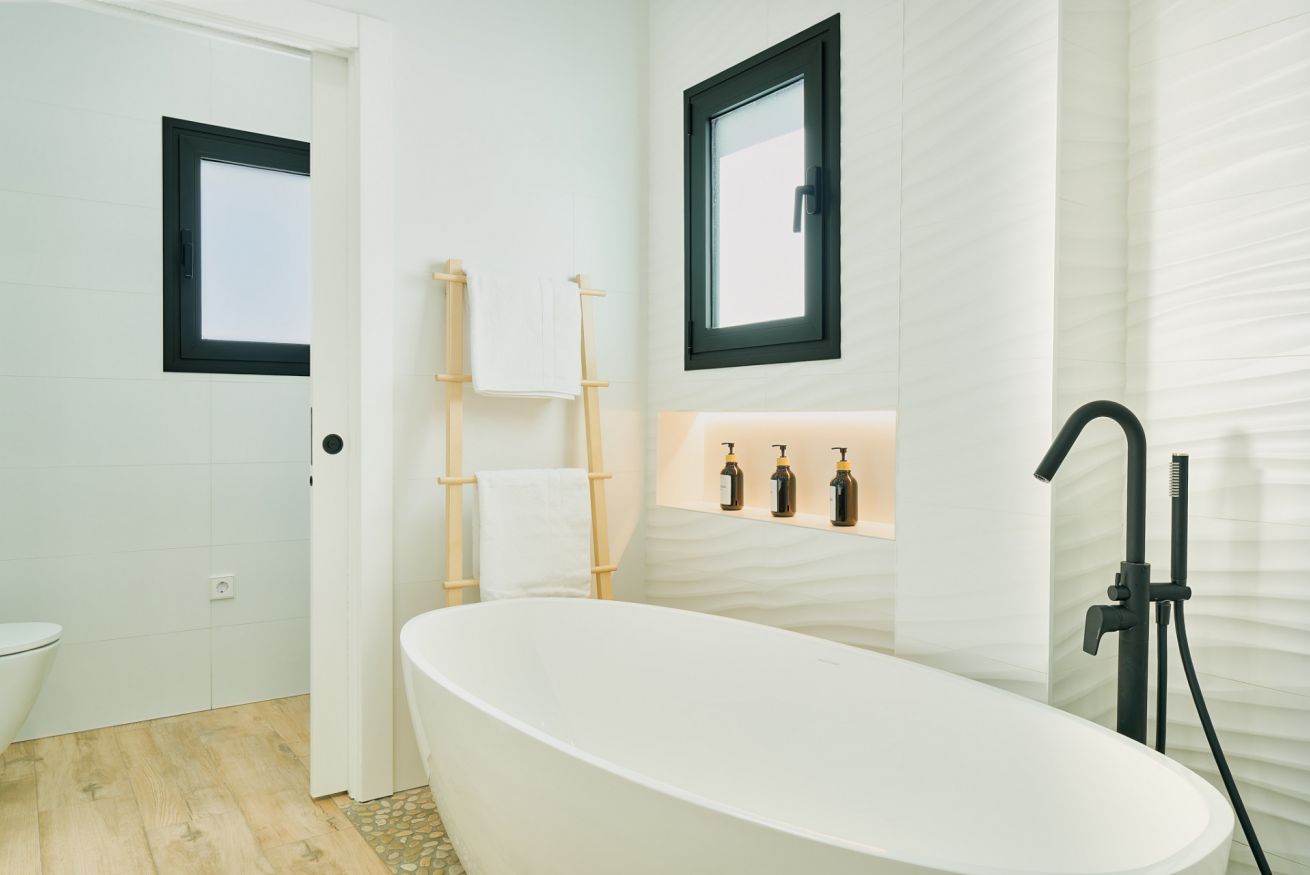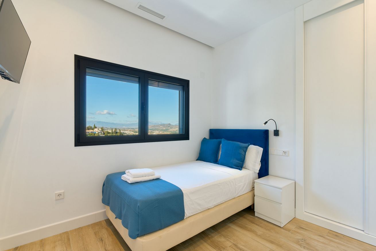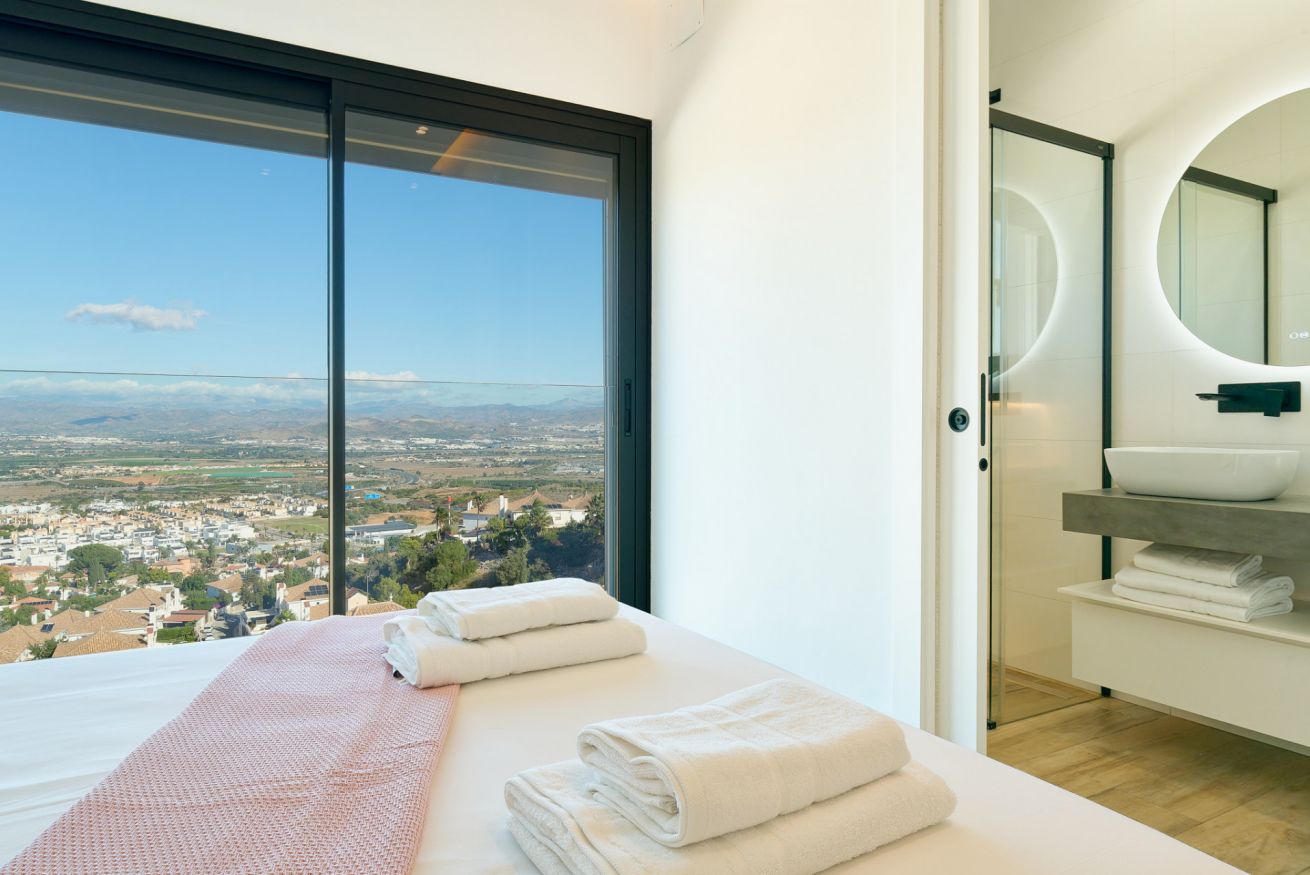 El dormitorio principal incluye un baño en suite con vistas, proporcionando un toque exclusivo y una experiencia única durante tu estancia.